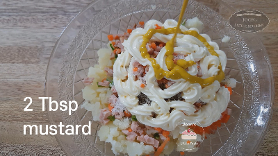 Add 6 tablespoons of mayonnaise and 2 tablespoons of mustard.